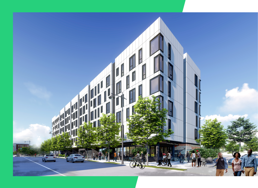 The project will ultimately preserve and develop 2,400 mixed-income units of housing to serve residents at various levels of area median income (AMI). The apartment complexes will offer bedroom sizes ranging from studios to threebedrooms. The first phase will develop 72 units of housing, 18 of which will serve renters at 30% AMI. The remaining units will rent at 60% or 80% AMI.