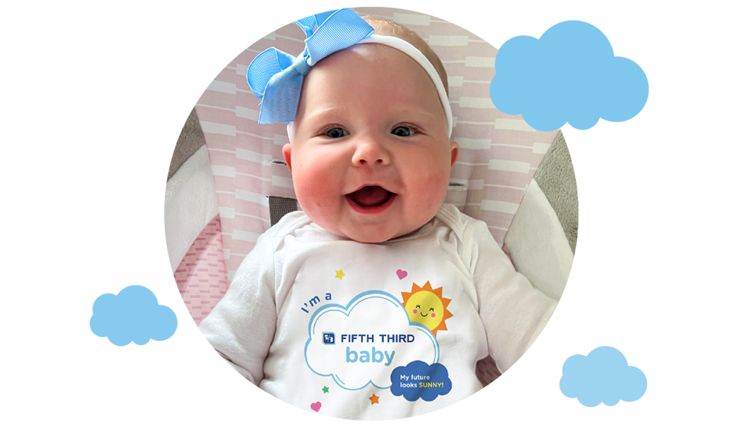 Another way we like to support our communities is by offering babies born on 5/3 a $1,053 gift toward a college savings fund. We also throw in a few extra surprises for mom and dad 😁. Check out all the adorable Fifth Third Babies.