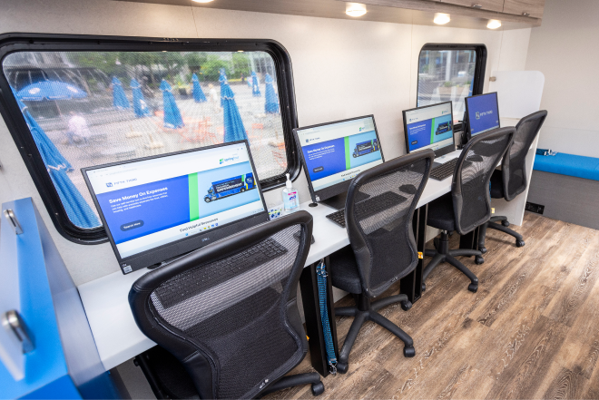 The eBus offers the services of SpringFour, a leading financial health fintech that connects visitors to more than 24,000 free local, statewide and national financial wellness and social services resources from nonprofit and government agencies.