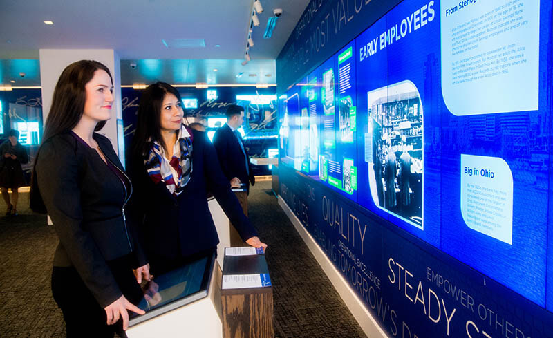 The Signature Wall features the signatures of more than 25 Fifth Third Bank presidents and other prominent Cincinnatians who not only helped shape Fifth Third Bank but also helped the city of Cincinnati prosper. A key to the signatures is located on the pillar in the middle of the museum.
